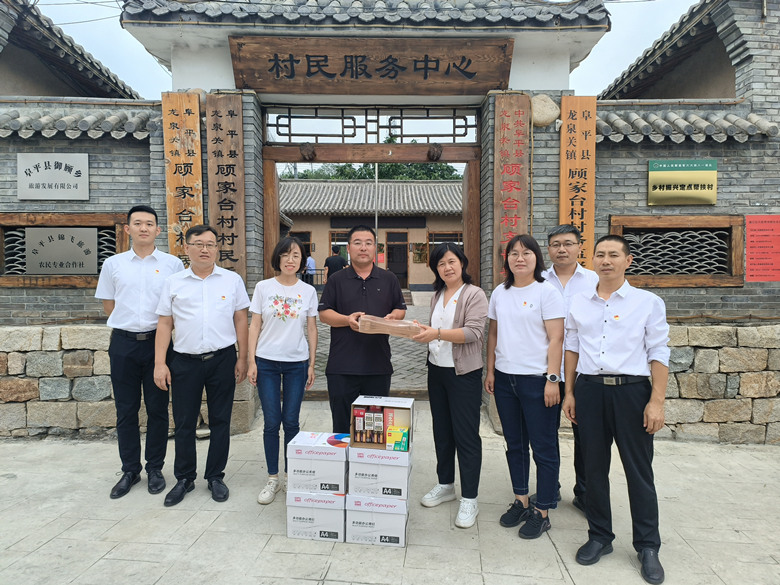 到達(dá)顧家臺(tái)村黨員教育培訓(xùn)基地后,冀科公司黨支部來到顧家臺(tái)村委會(huì),向其捐贈(zèng)打印紙、檔案袋等辦公用品。隨后,干部職工通過“以購(gòu)代捐”和“以買代幫”等形式,購(gòu)買幫扶村農(nóng)產(chǎn)品,為鄉(xiāng)村振興工作貢獻(xiàn)一份力量。