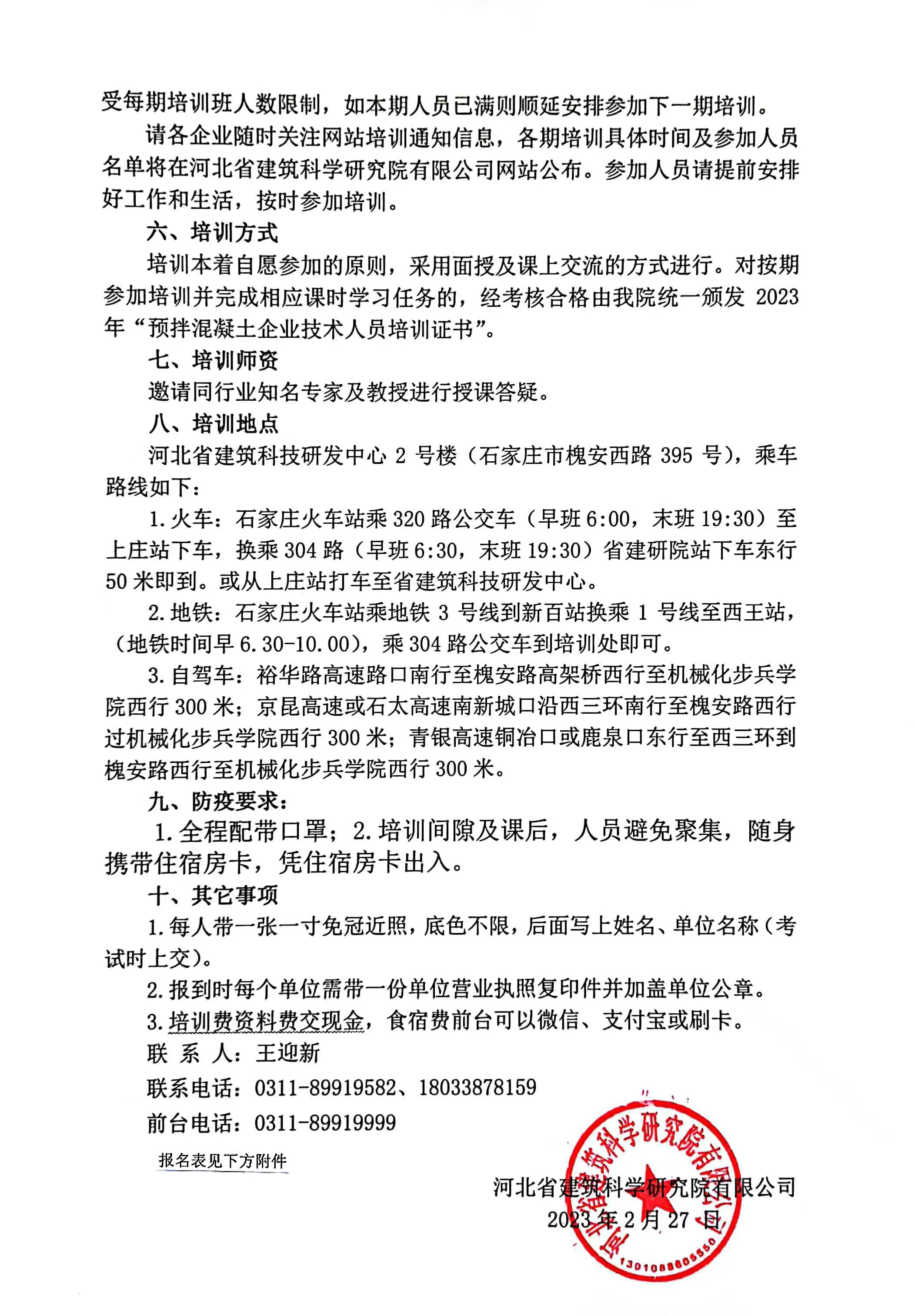 關于舉辦2023年預拌混凝土企業技術人員培訓班的通知